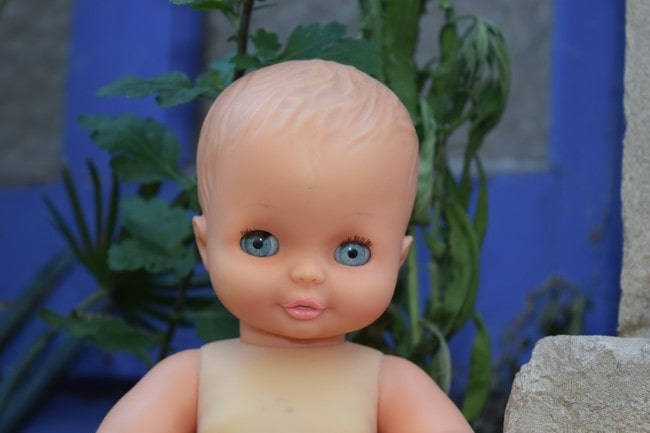 Ce petit poupon de 30 cm (présenté au catalogue comme mesurant 35 cm) est tout en plastisol. Il est entièrement monté par emboîtements.