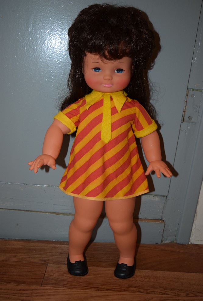 Christiane a une soeur aînée, plus petite qu’elle, dans ma collection depuis déjà longtemps. Je vous l’ai présentée dans un précédent billet. Elle s’appelle Paloma lorsqu’elle est de marque Clodrey et Pamela, lorsque moins bien finie et moins bien vêtue, elle est vendue sous la marque Jolydol.