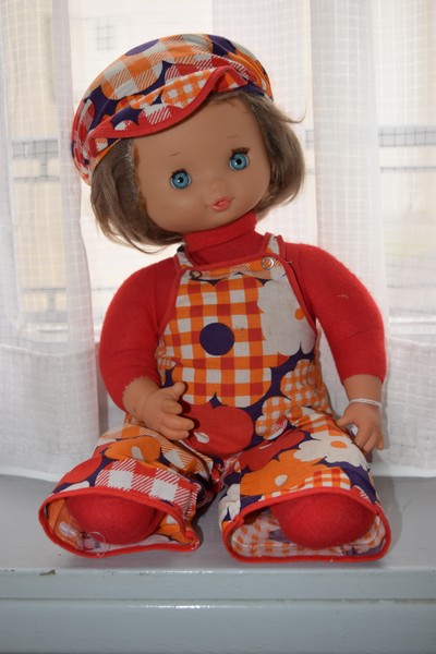 Adoptée au festival européen de la poupée de Salon de Provence, le 3 mars 2018, voici Jacinthe de 1972, une poupée toute souple de 52 cm. Elle est ici présentée dans l’une de ses tenues d’origine complète.