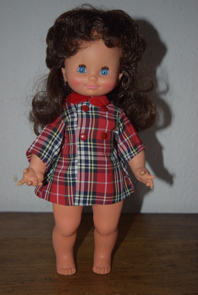 Ses yeux dormeurs sont coucous et ses longs cheveux sont implantés. Ses sourcils sont dessinés en vol d’oiseau. La nôtre est brune aux yeux bleus.