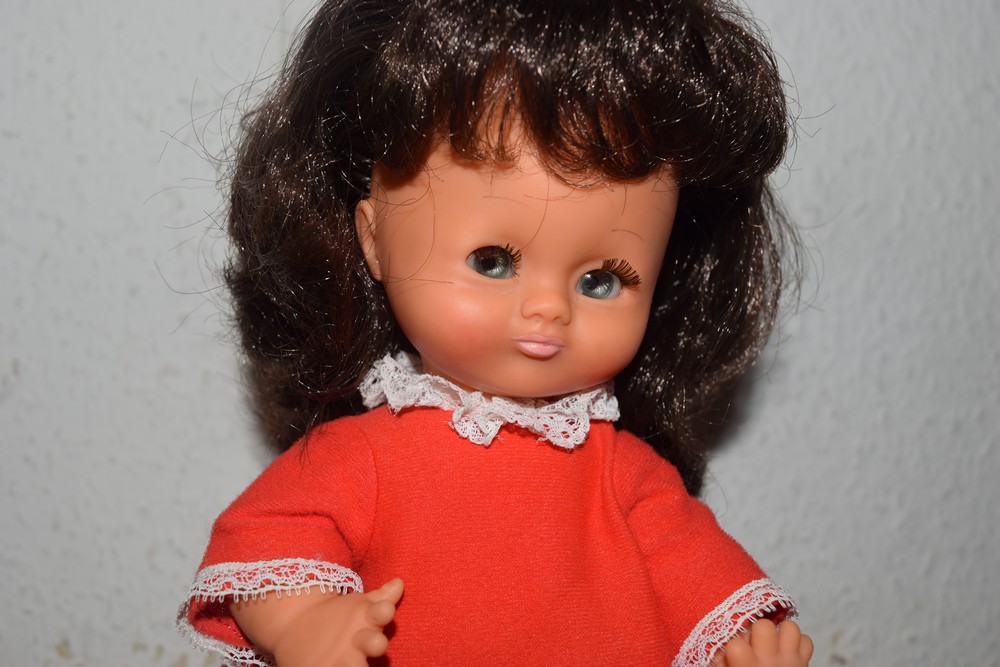 Ses yeux coucous à mécanisme non solidaire sont dormeurs et ses sourcils classiques sont dessinés en arc de cercle. Elle a de magnifiques longs cheveux implantés. La nôtre est brune aux yeux bleu-vert.