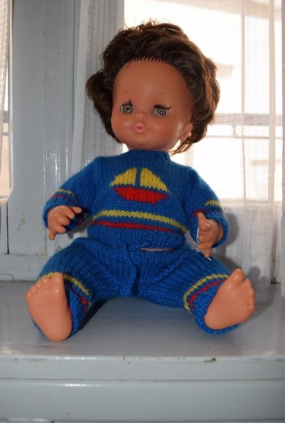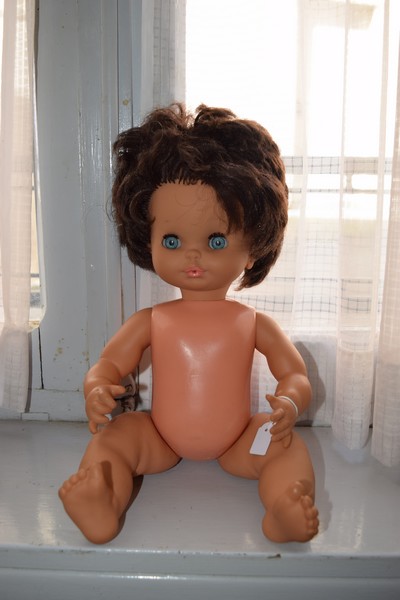 C’est un bébé buveur mouilleur de 42 cm. Sa tête et ses membres en vinyle sont emboîtés à son corps en polyéthylène. Ses yeux sont dormeurs et ses sourcils sont vol d’oiseau.