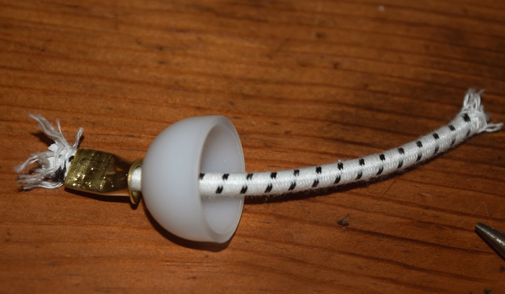 Cette étape est essentielle et il ne faut pas hésiter à écraser la pièce fermement en plusieurs endroit afin de bloquer l’élastique même lorsque l’on exerce une tension dessus. C’est un peu le même principe que les perles à écraser utilisées dans certains types de fermoirs en bijouterie, sauf que la pièce en question est beaucoup plus grosse et donc requiert beaucoup plus de force. Les paumes de mes mains s’en souviennent encore !