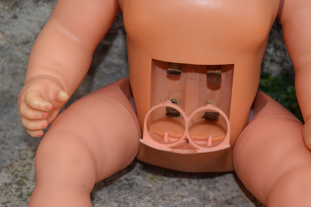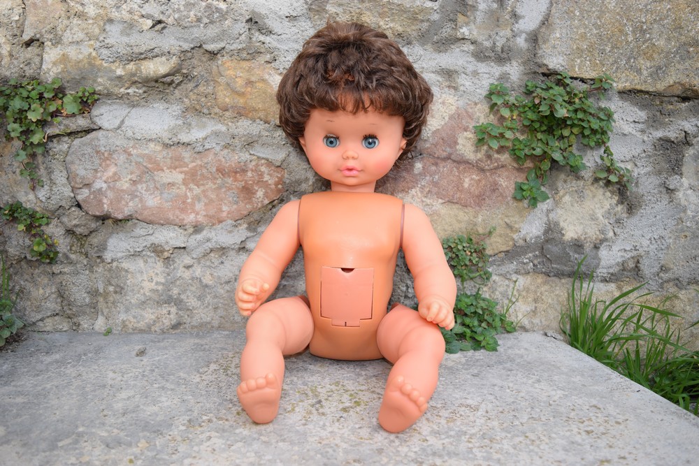 Aucun marquage indiquant un brevet ou une marque de système électrique n’apparaît sur le corps du poupon.