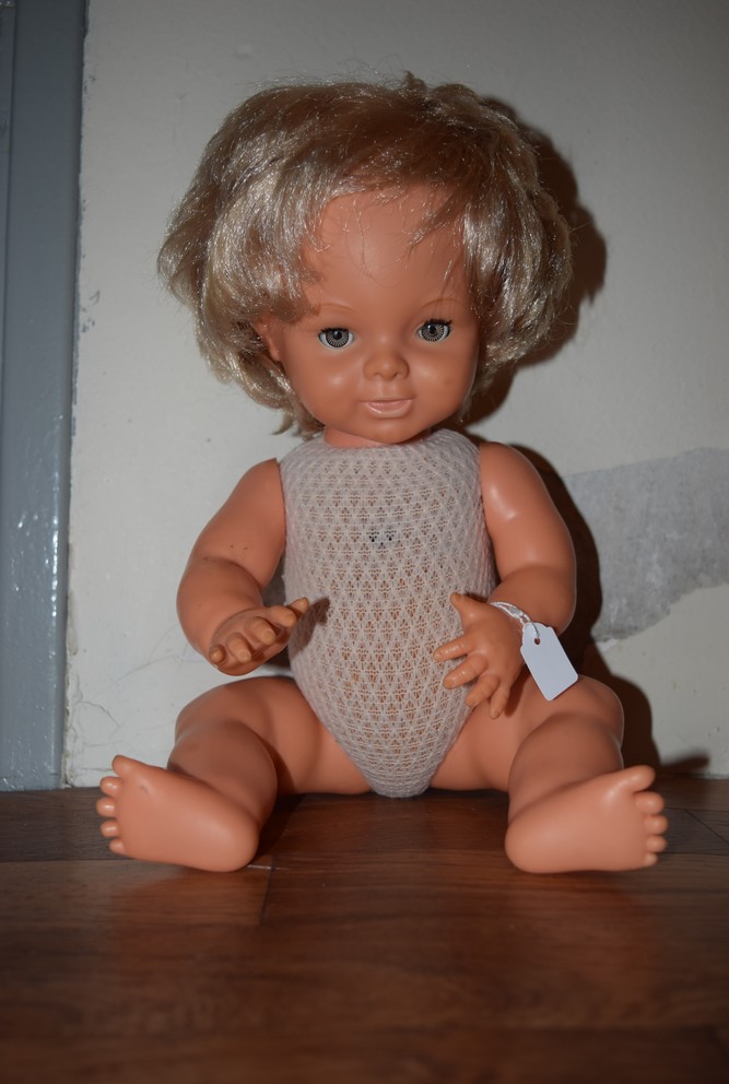 Nous nous étions alors trompées. Ces poupons ne sont pas des Pipiou (Pipiou dispose d’un mécanisme d’abord à molette puis électrique qui lui permet de tourner la tête) et à ce jour nous ne les avons toujours pas identifiés avec certitude.