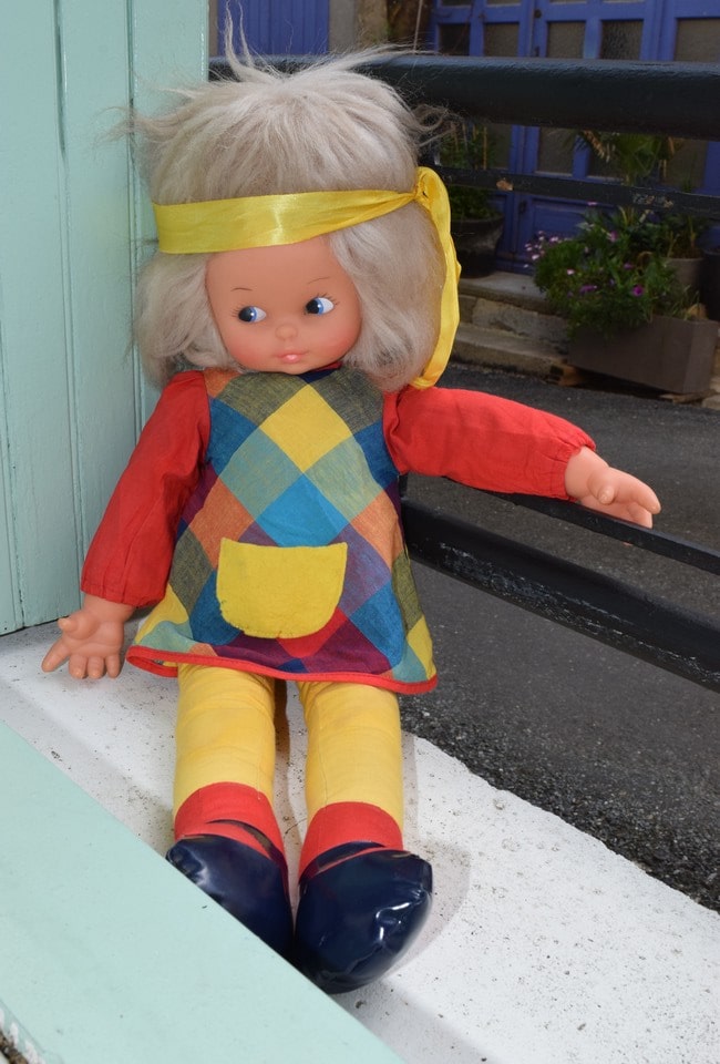 « Cette charmante poupée de chiffon de 52 cm, très souple, légère, incassable, faite pour être traînée avec soi« , comme nous l’indique le catalogue Clodrey-CEJI de 1972, s’appelle Jacinthe. C’est un Jetpartout, ces poupées de chiffon imaginées par Claude Refabert et destinées aux tout-petits.