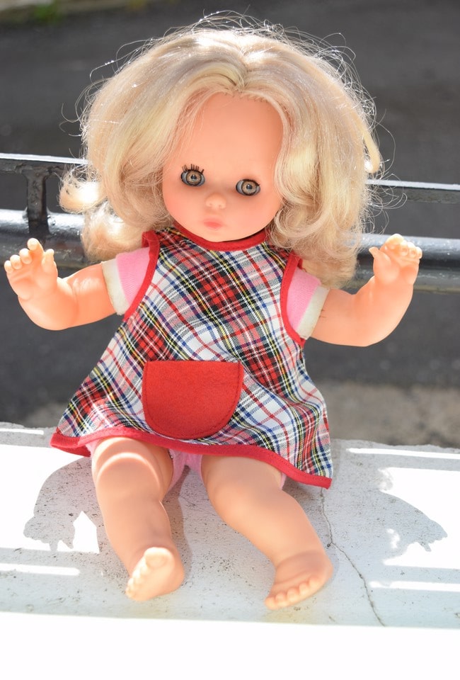 Voici Mickette vêtue de la tenue « jeux d’enfants » de 1970 malheureusement dépourvue de son sous-pull.