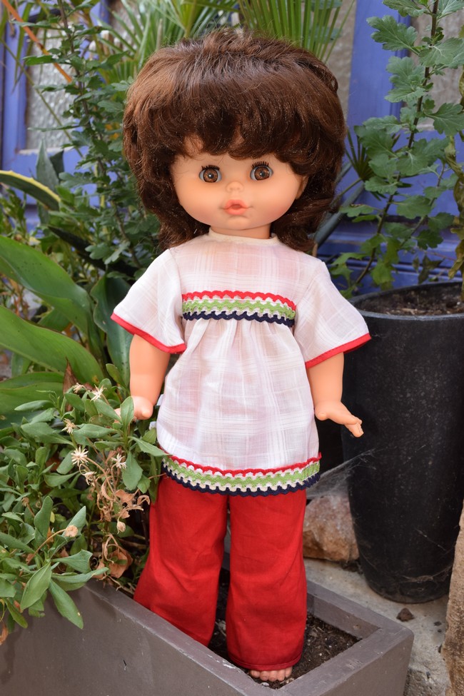 Je vous présente l’une des adoptées de l’été. Elle s’appelle Dominique. C’est une grande poupée Clodrey de 52 cm.