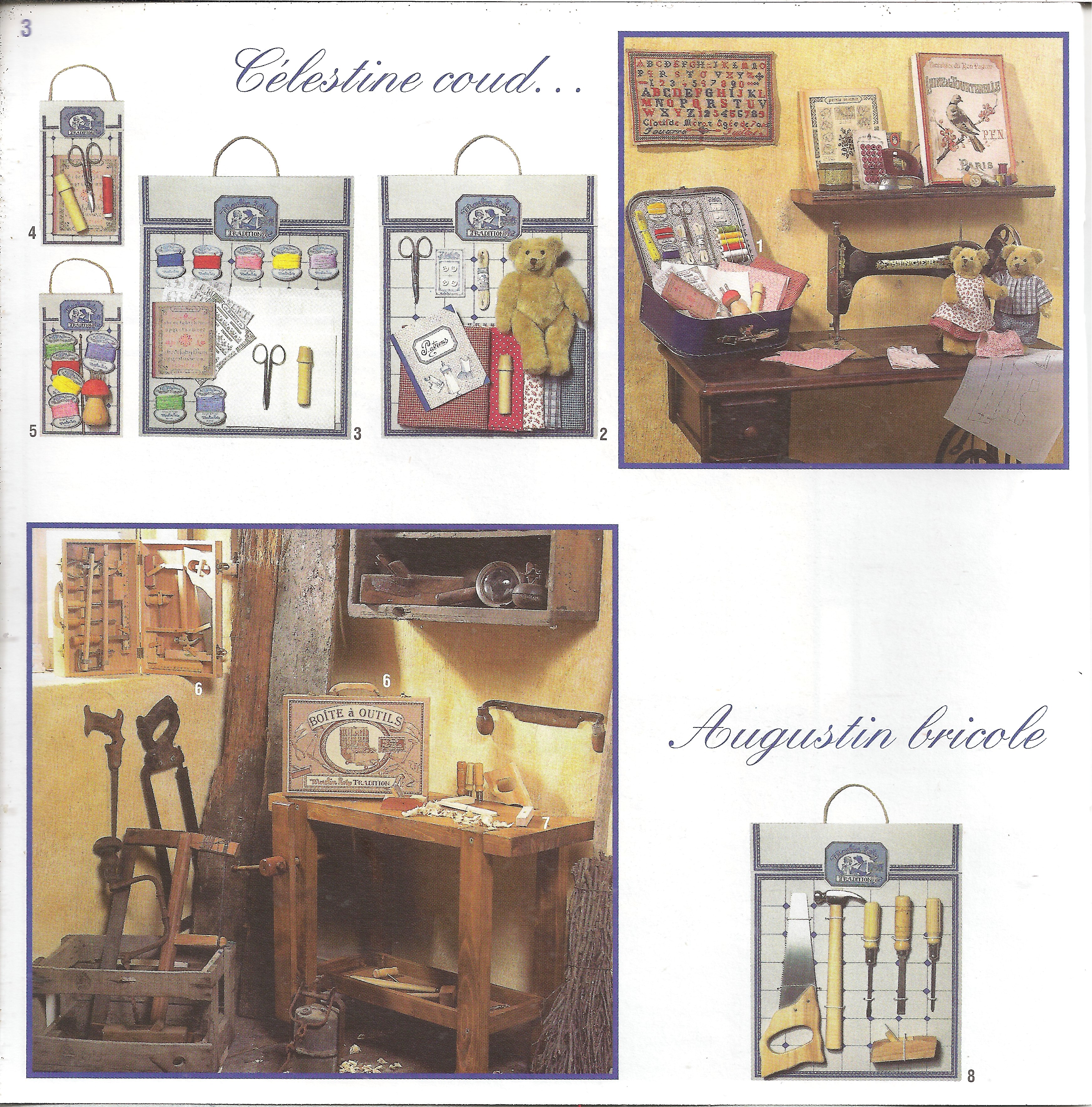 Débutons tout de suite avec des jouets qui m’ont émerveillée enfant. Pendant des semaines, j’ai rêvé de découvrir au pied du sapin Augustin et Célestine, leurs tenues, mobilier et accessoires ! Hélas l’ensemble était très cher et prenait énormément de place. J’ai donc dû me contenter d’aller les admirer dans les grands magasins parisiens.