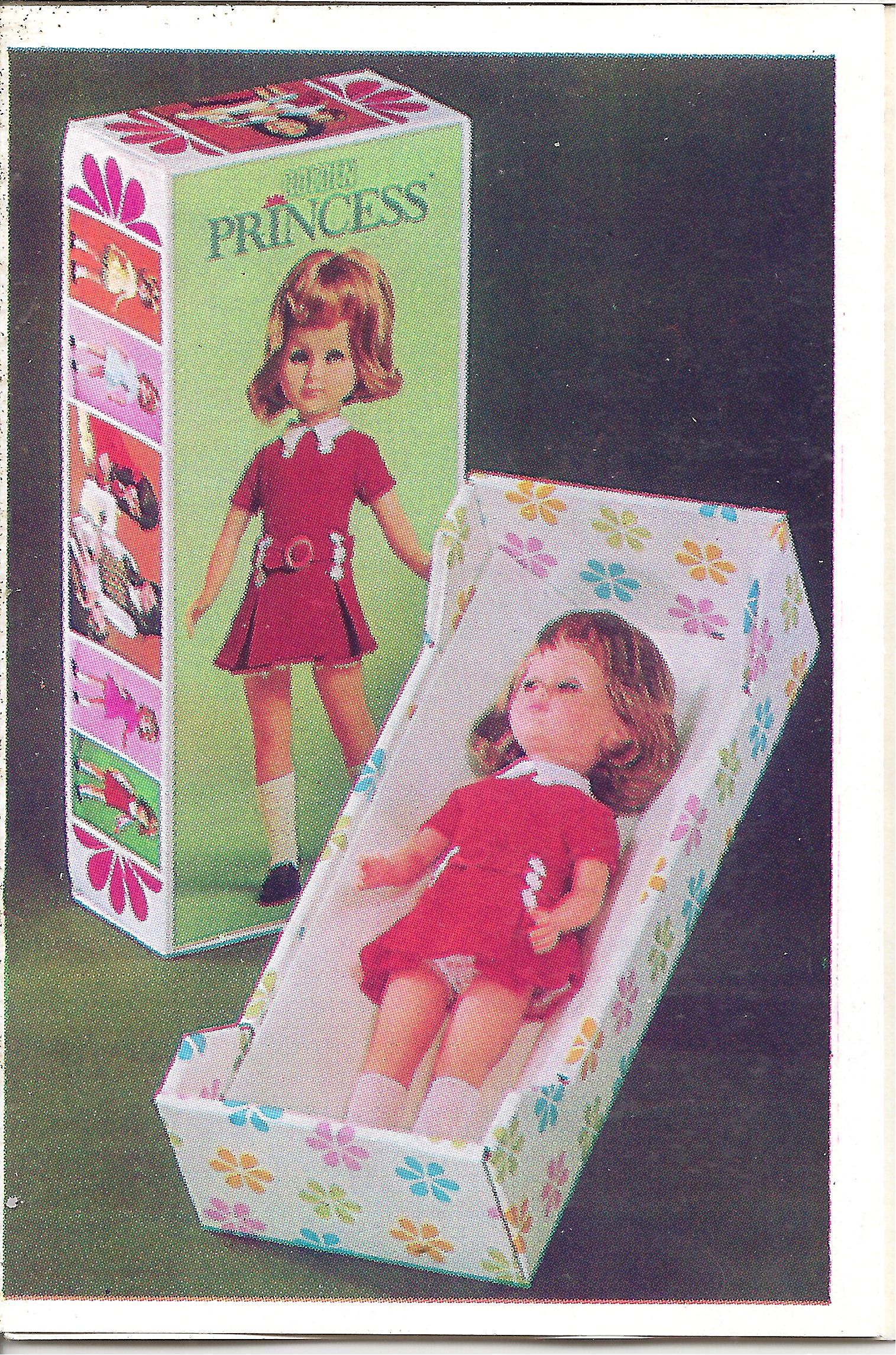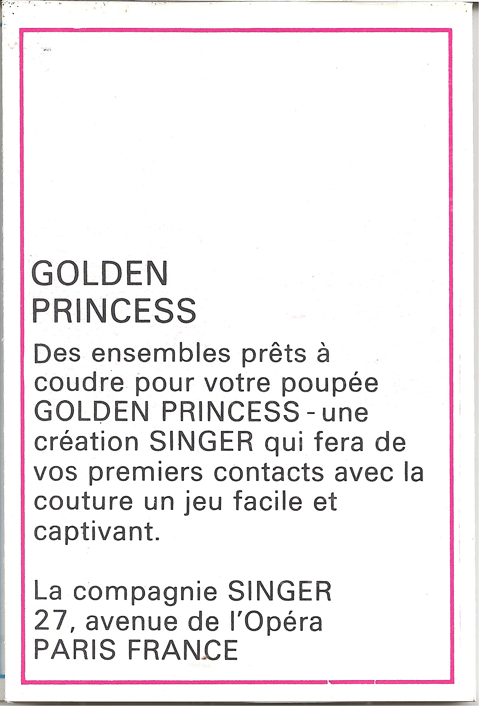 Commercialisée entre 1967 et 1969, Golden Princess a eu deux visages. Nous rêvons d’ajouter un jour ces deux poupées à notre collection. En attendant, ce petit dépliant présente leur élégant trousseau.