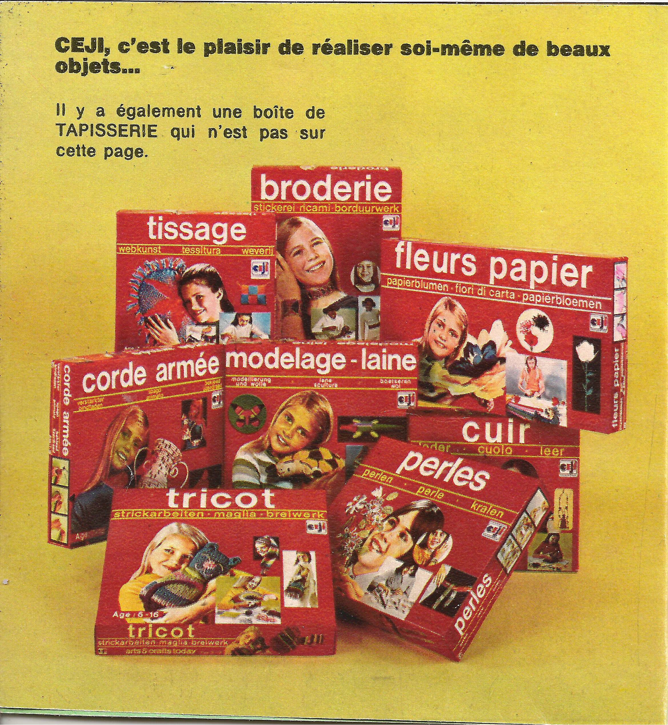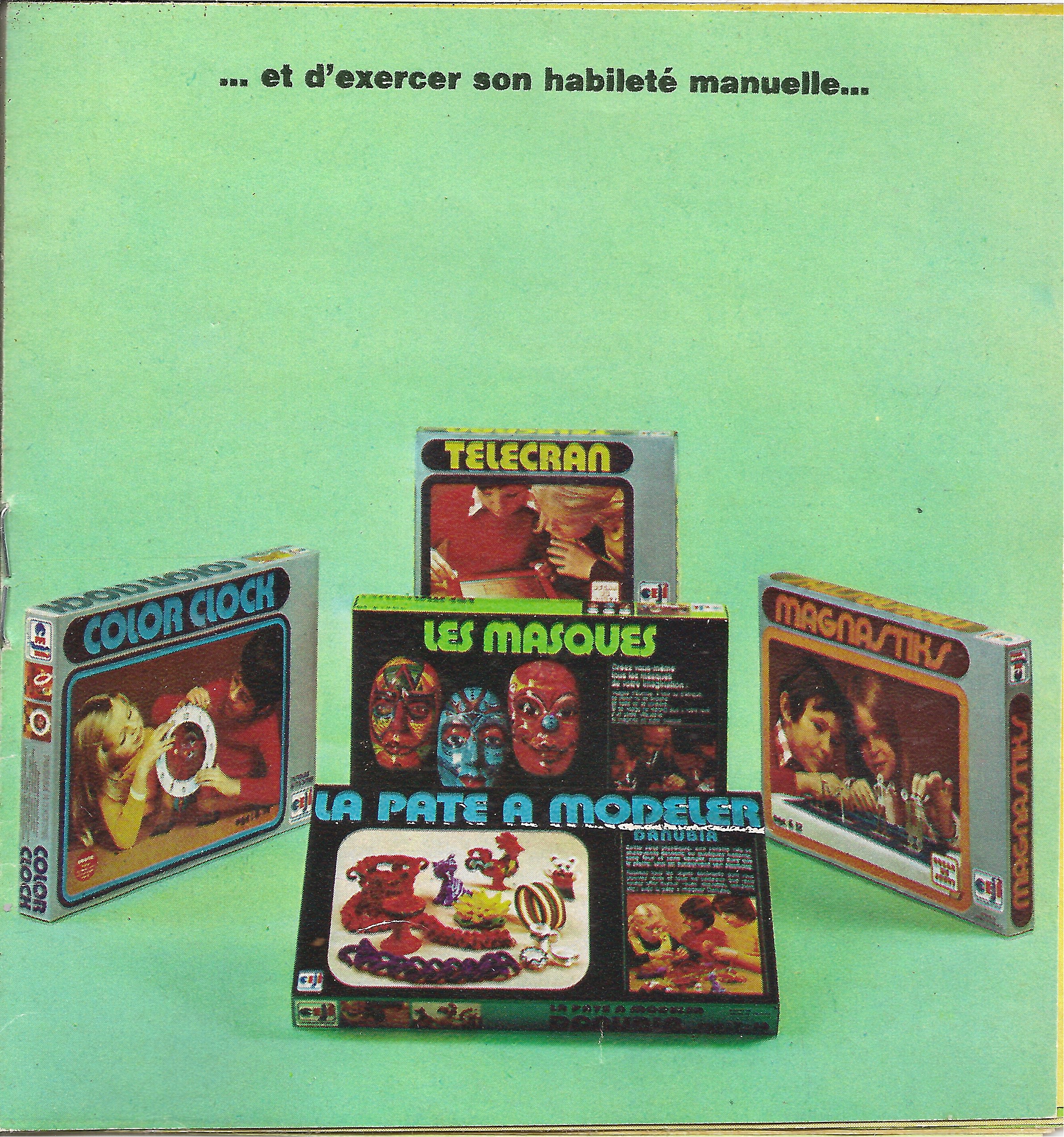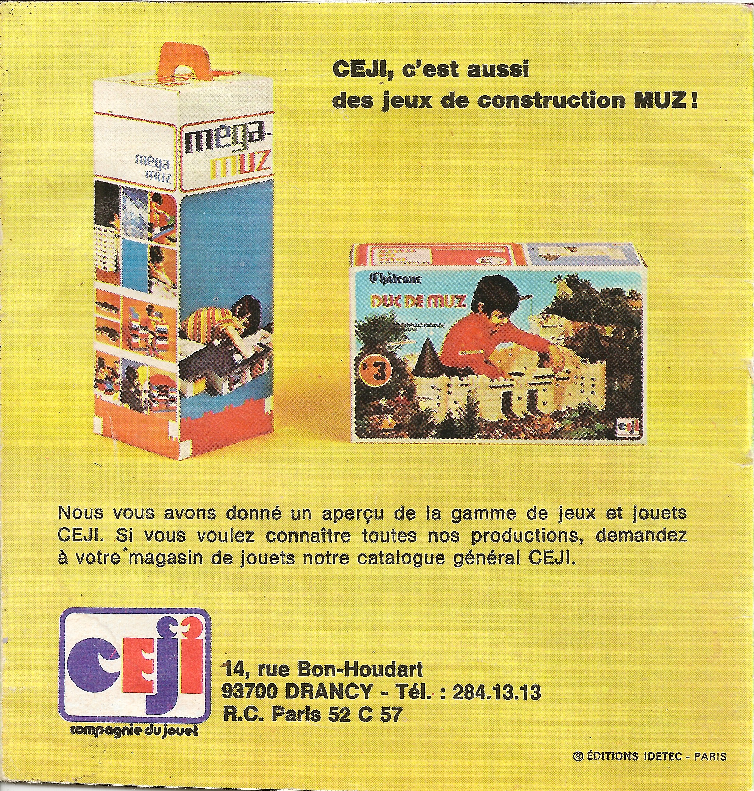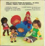 Voici aujourd’hui un mini catalogue attribué à 1975 et qui était glissé dans les emballages des différents jouets distribués par la CEJI : poupées Clodrey, peluches Lang, jouets Joustra et coffrets Jouets Educatifs Universels.