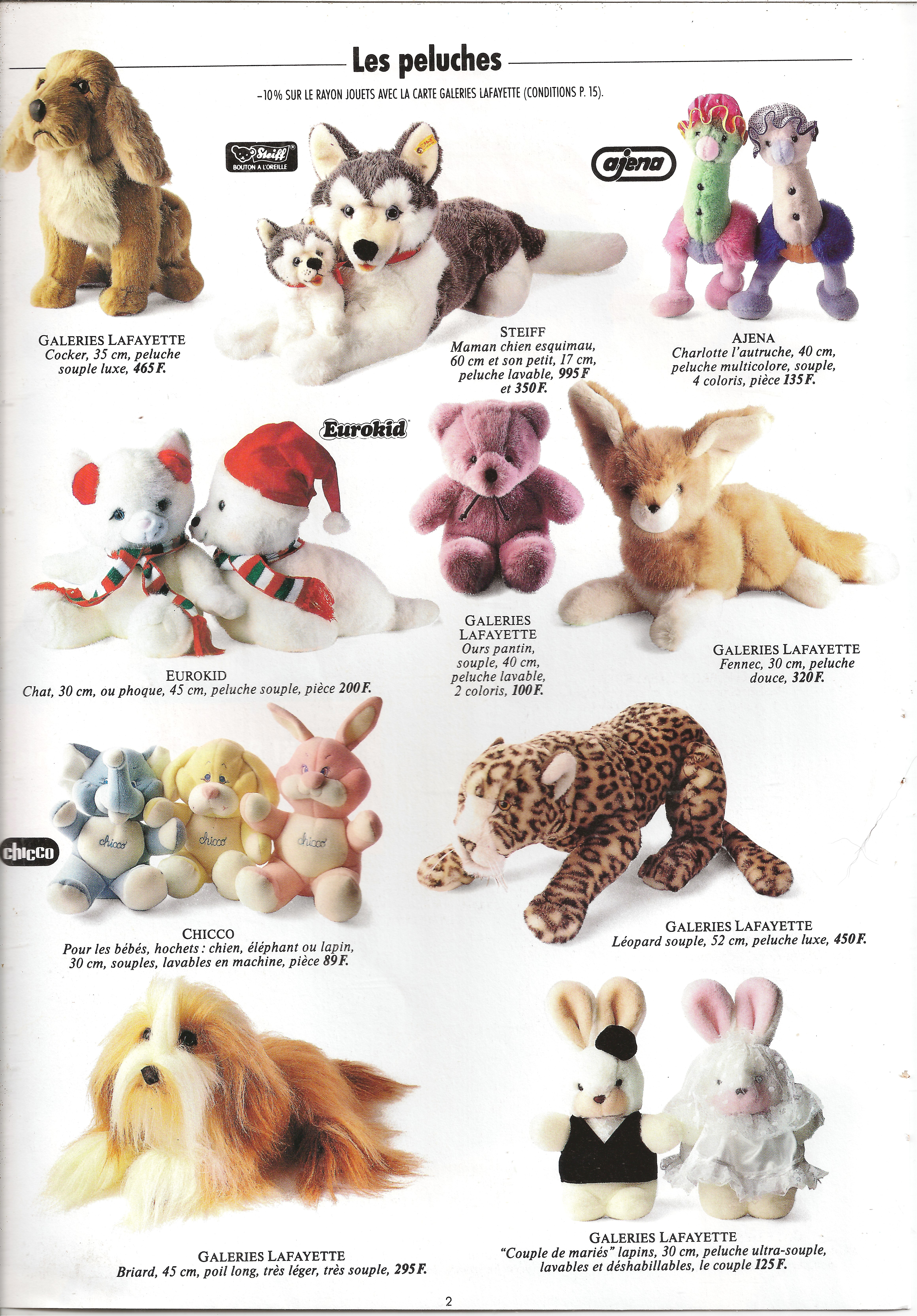 Nous vous proposons de découvrir aujourd’hui le catalogue Galeries Lafayette Noël 1989. En vedette sur la couverture, ce sont Tutti et Frutti, deux adorables souris en peluche proposées à petit prix aux bons clients.