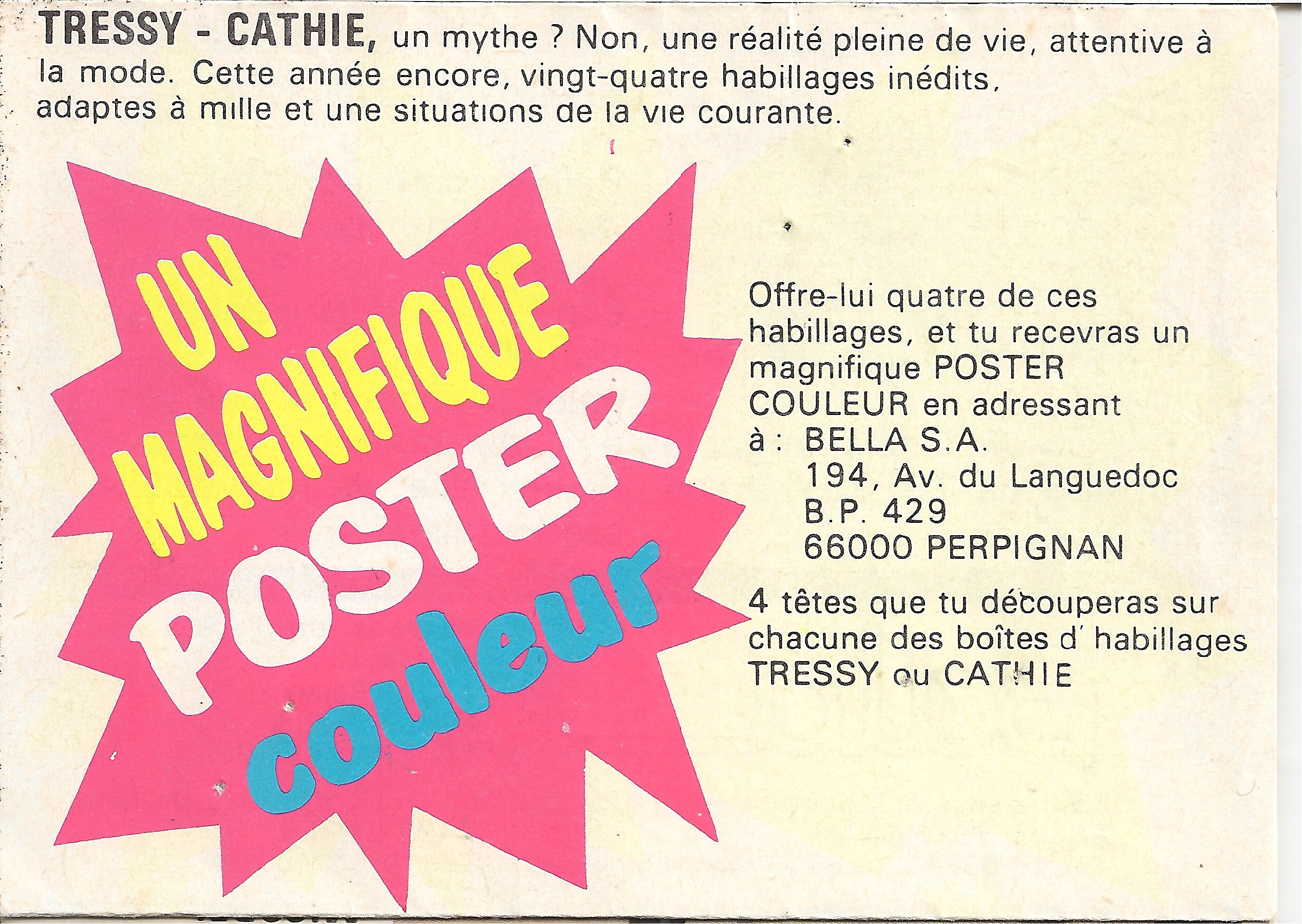 Nous sommes en 1978 et ce dépliant en accordéon est presque exclusivement consacrés aux célèbres poupées mannequin de la marque : Cathie, Tressy et Mircrobe.