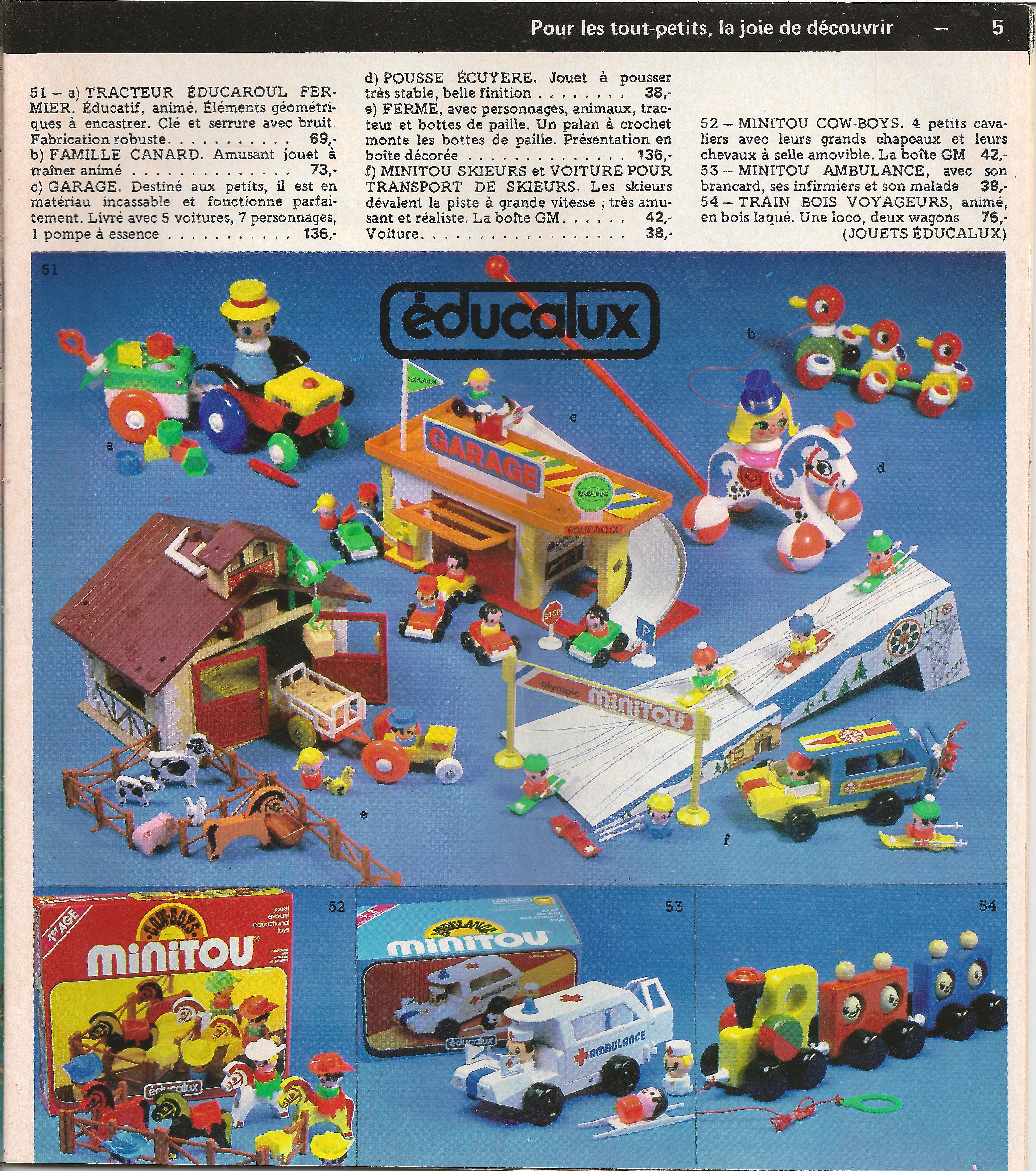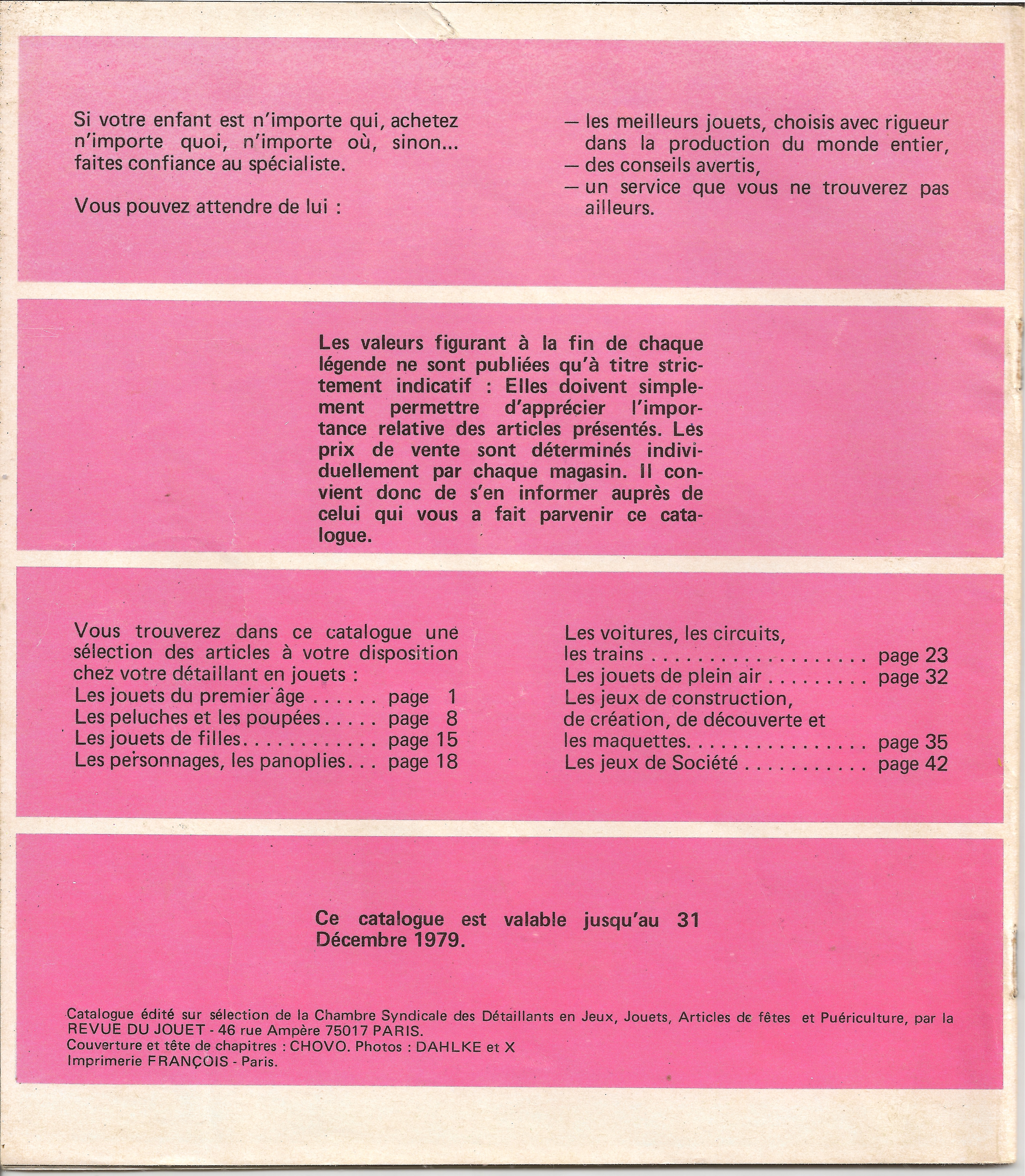 Le catalogue du mois date de 1979 et était mis à disposition des revendeurs qui pouvaient y apposer leurs coordonnées. Edité par La revue du jouet, une publication professionnelle existant encore aujourd’hui, il proposait des jouets sélectionnés par la chambre syndicale des détaillants en jeux, jouets, articles de fêtes et puériculture.