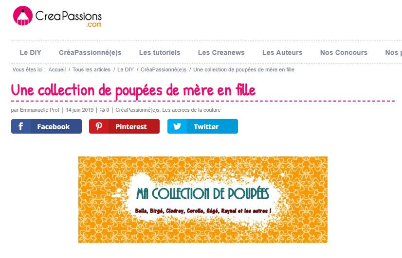 Amis lecteurs, vous qui nous suivez fidèlement depuis des semaines voire des mois, si vous souhaitez nous connaître un peu mieux, nous et nos poupées, vous pouvez aller faire un petit tour sur CréaPassions, le magazine en ligne des loisirs créatifs.