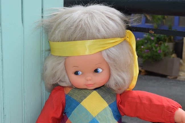 « Cette charmante poupée de chiffon de 52 cm, très souple, légère, incassable, faite pour être traînée avec soi« , comme nous l’indique le catalogue Clodrey-CEJI de 1972, s’appelle Jacinthe. C’est un Jetpartout, ces poupées de chiffon imaginées par Claude Refabert et destinées aux tout-petits.